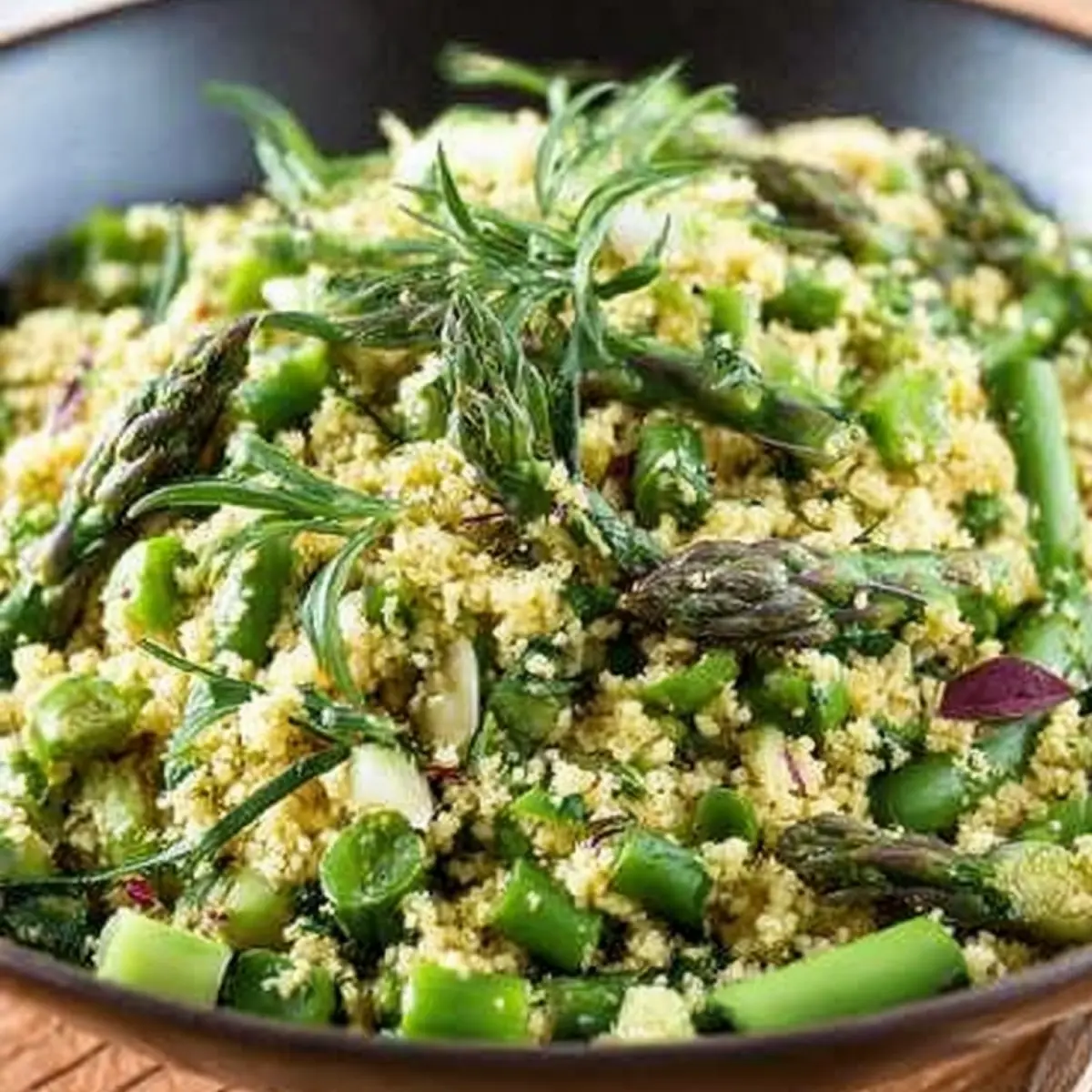 So servierst du Couscous Salat mit grünem Spargel als Highligt