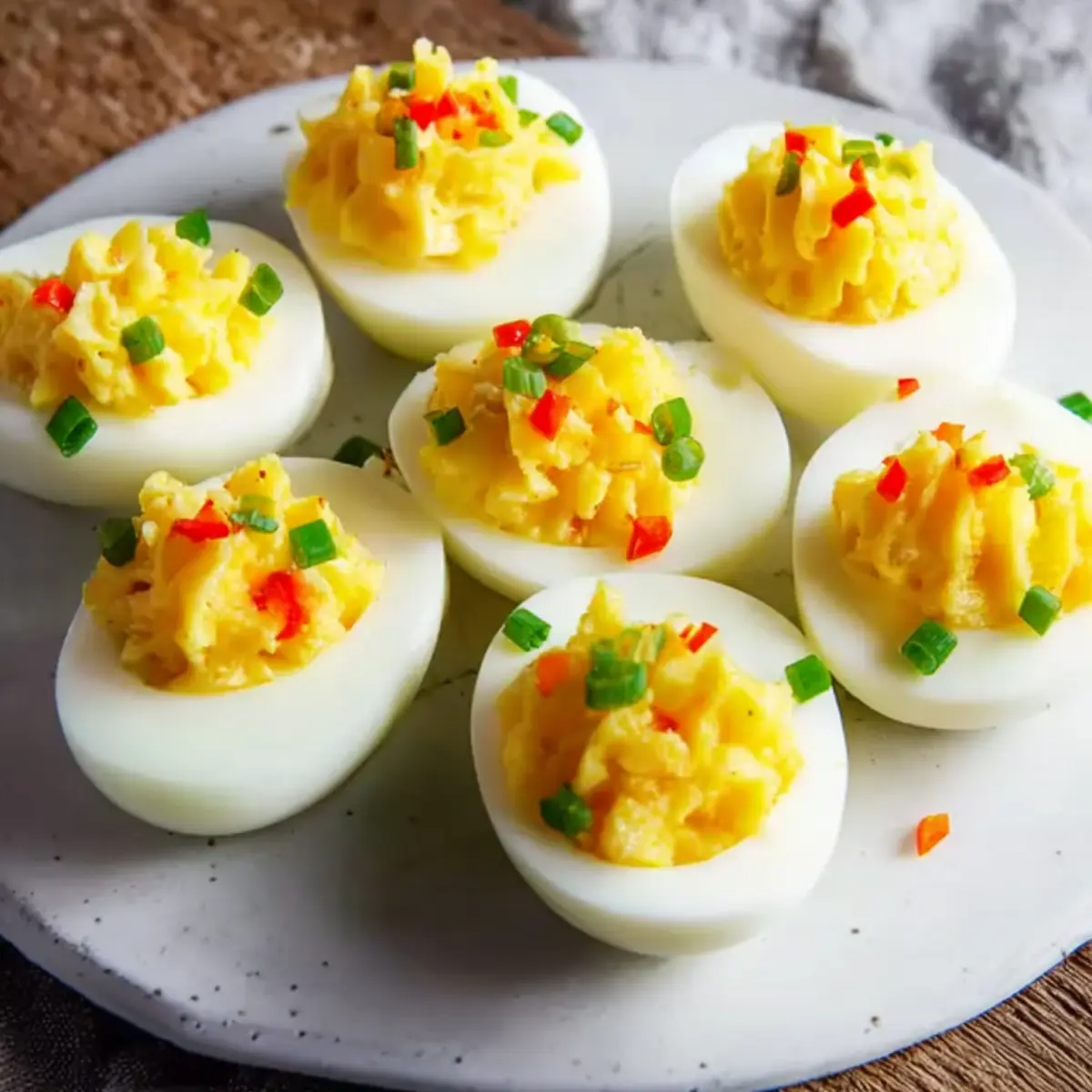 Cremig und doch mit leichtem Biss – genau so schmecken Gefüllte Eier, wenn sie gelungen sind. Die perfekte Balance entsteht: Das zarte Eiweiß trifft auf die Füllung, die zum Anbeißen einlädt. Durch die Mayonnaise wird alles weich und fast seidig, während der mittelscharfe Senf einen kleinen, aber nicht übermütigen Kick gibt. Bei jedem Biss kommt diese Mischung aus feinem, kühlen Mundgefühl und würziger Eigelbmischung ins Spiel.