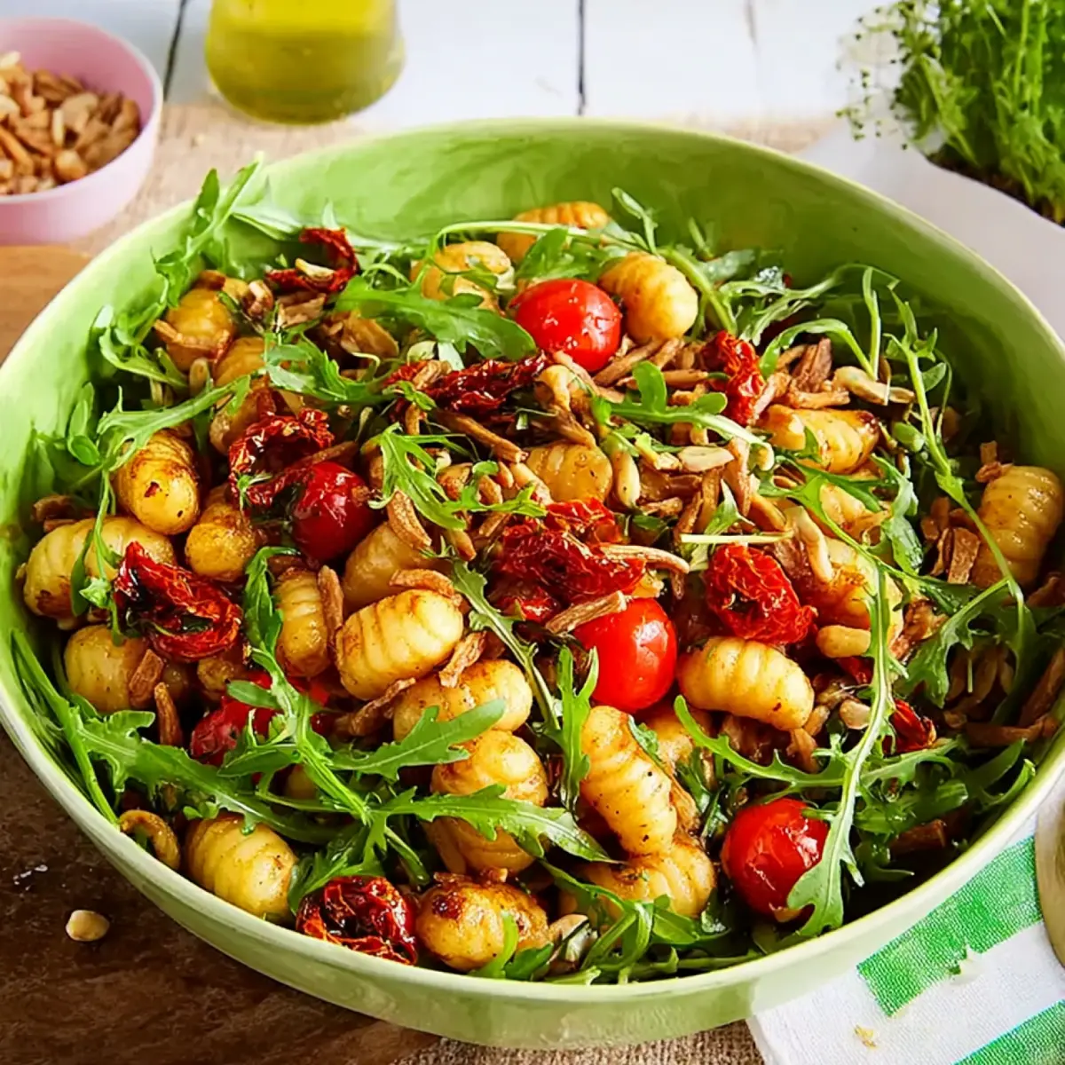 - Gnocchi: Die Hauptzutat, die den Salat herrlich sättigend und soft macht – ideal, wenn es mal schnell gehen muss.
