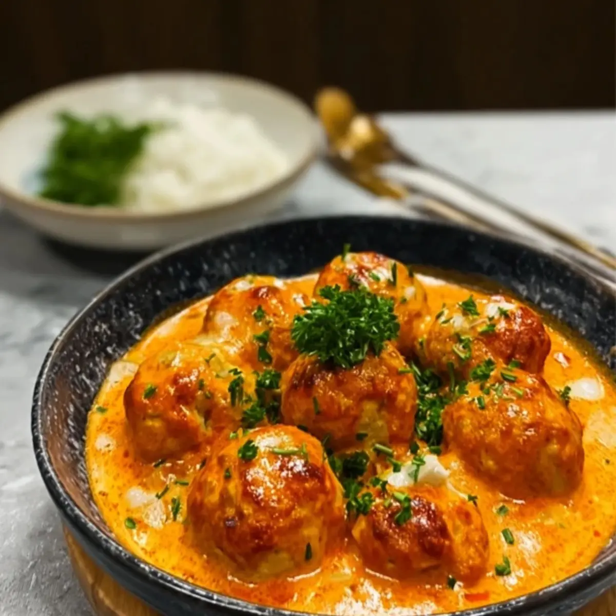 Hähnchenfleischbällchen in cremiger Paprikasauce Rezept