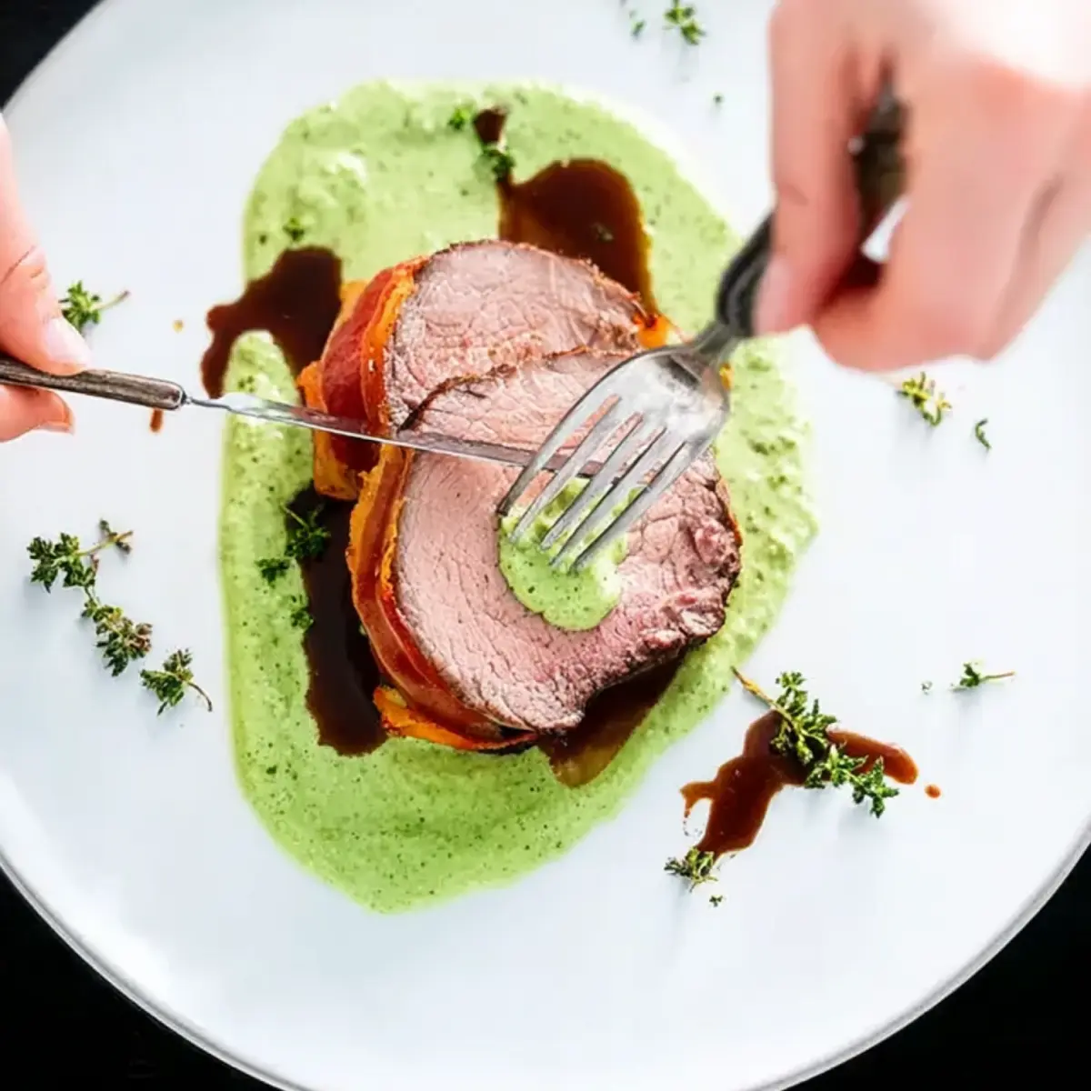 Jeder Schnitt durch den Speckmantel gibt den Blick frei auf rosa, butterzartes Fleisch – und mit jedem Bissen ist da diese perfekte Balance aus sanft, würzig und dezent süß. Am liebsten serviere ich das Filet mit einem tiefgründigen Rotweinjus: samtige Sauce, kräftig und fein, zieht sich über Teller und Beilagen. So wird aus einem einfachen Abendessen ein richtiges Erlebnis, fast wie ein Restaurantbesuch – nur mit selbstgemachtem Glück.