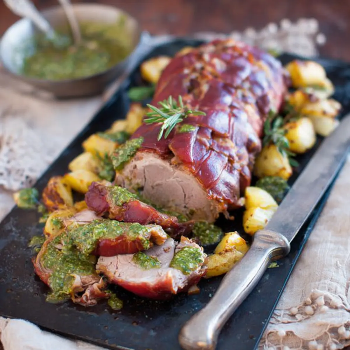 Schweinebraten im Kräuter Schinken Mantel für jeden Anlass